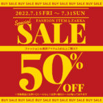 【7.15 Fri ~ 7.31 Sun】ファッション&雑貨アイテム3点以上ご購入で50%OFF