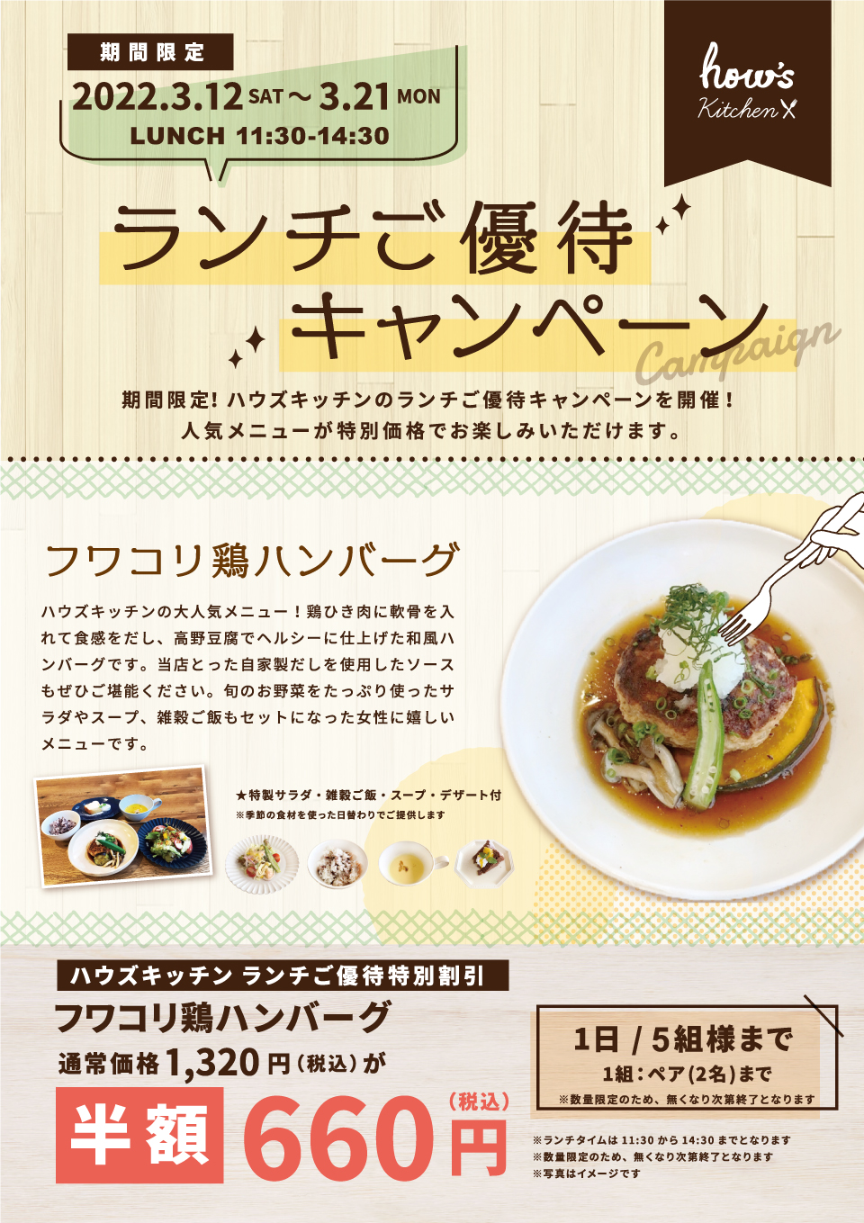 ランチご優待キャンペーン フワコリ鶏ハンバーグ