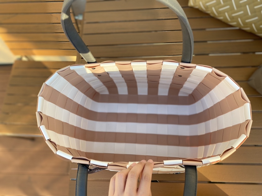 再生プラスチック素材を編み込んで作られています。
