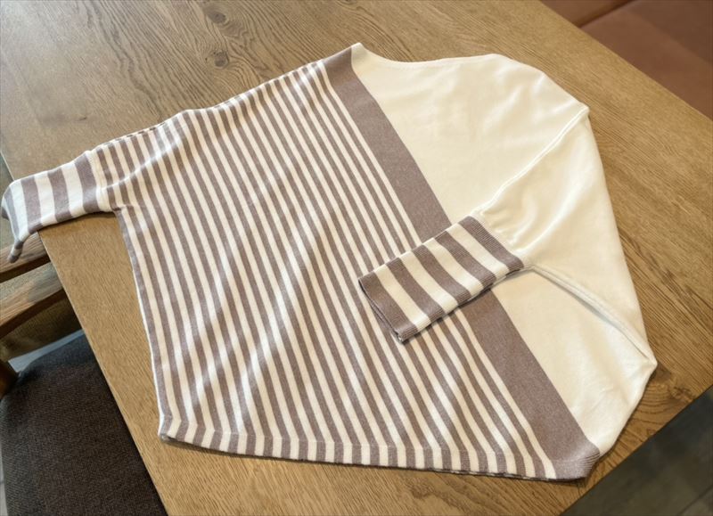 アシンメトリーな斜めボーダーがなんともオシャレなドルマンニット。